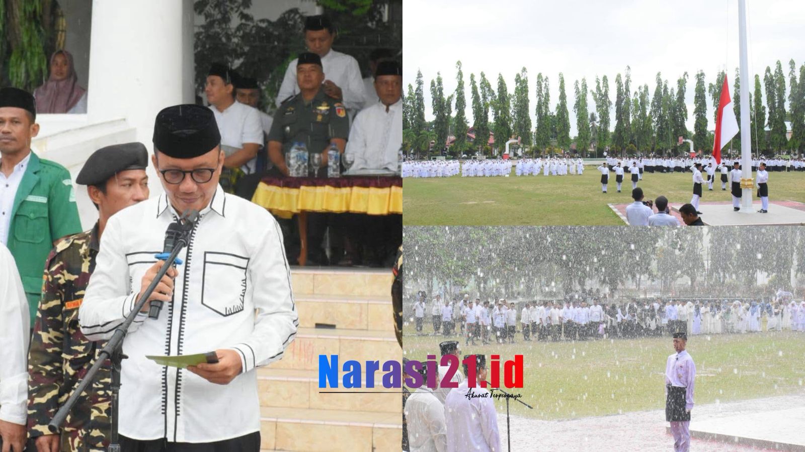 NARASI21.ID – Meski diguyur hujan deras sejak pagi, semangat para santri dan peserta upacara tidak surut untuk memperingati Hari Santri Nasional tahun 2025 yang dipusatkan di lapangan Alun-Alun Tilamuta, Kabupaten Boalemo, Rabu (22/10).