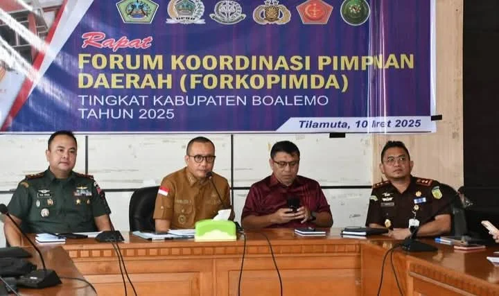 Hal itu disampaikan langsung oleh Wakil Bupati Boalemo, Lahmudin Hambali saat memimpin rapat Forum Koordinasi Pimpinan Daerah (FORKOPIMDA) tingkat Kabupaten Boalemo, bertempat di ruang vicon Kantor Bupati, Senin 10 Maret 2025.