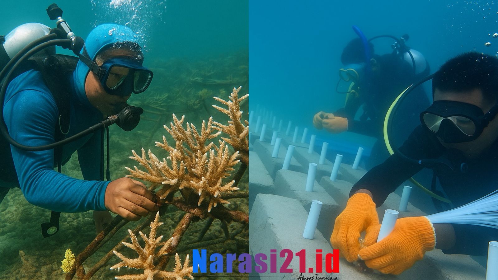 “Kami ganti karang yang mati, bersihkan lumut, dan pantau pertumbuhannya tiap minggu. Kami ingin laut ini kembali seperti dulu,” katanya.