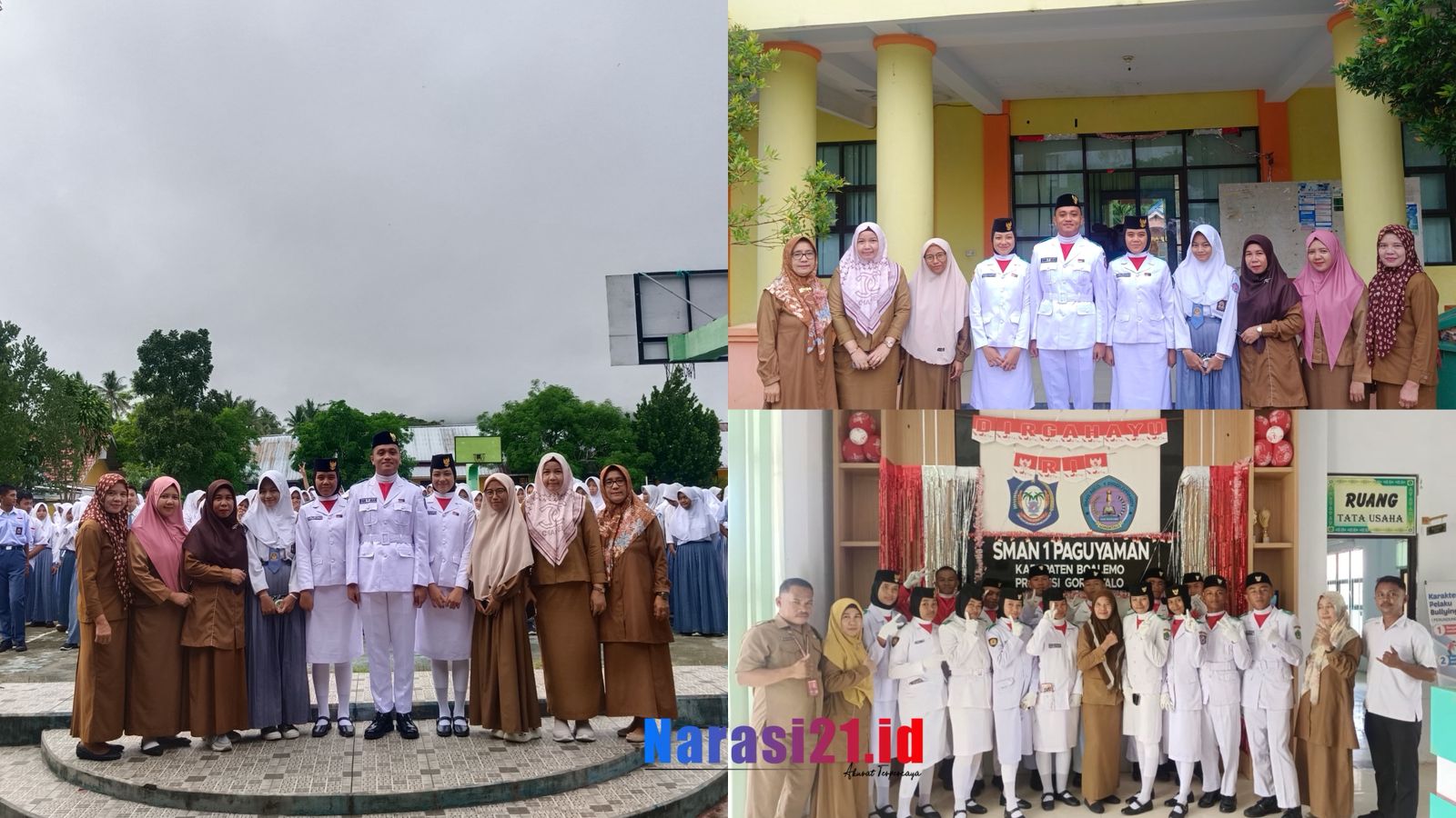 NARASI21.ID – Setelah berhasil menjalankan tugas sakral pada Upacara Peringatan HUT ke-80 Kemerdekaan Republik Indonesia, anggota Pasukan Pengibar Bendera Pusaka (Paskibraka) dari SMAN I Paguyaman akhirnya disambut pihak sekolah dengan penuh kebanggaan, Selasa (26/8).